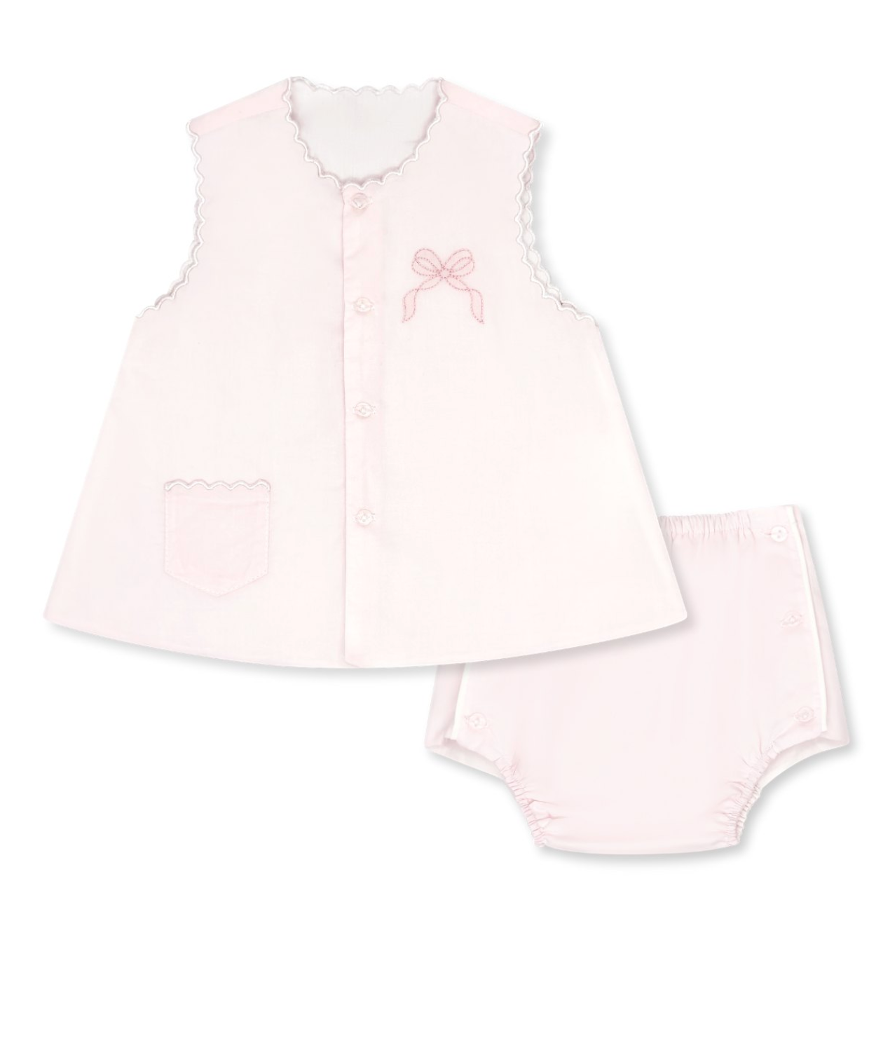 BLESSINGS PINK BATISTE WITH WHITE SCALLOP TRIM AND PINK BOW EMBROIDERY