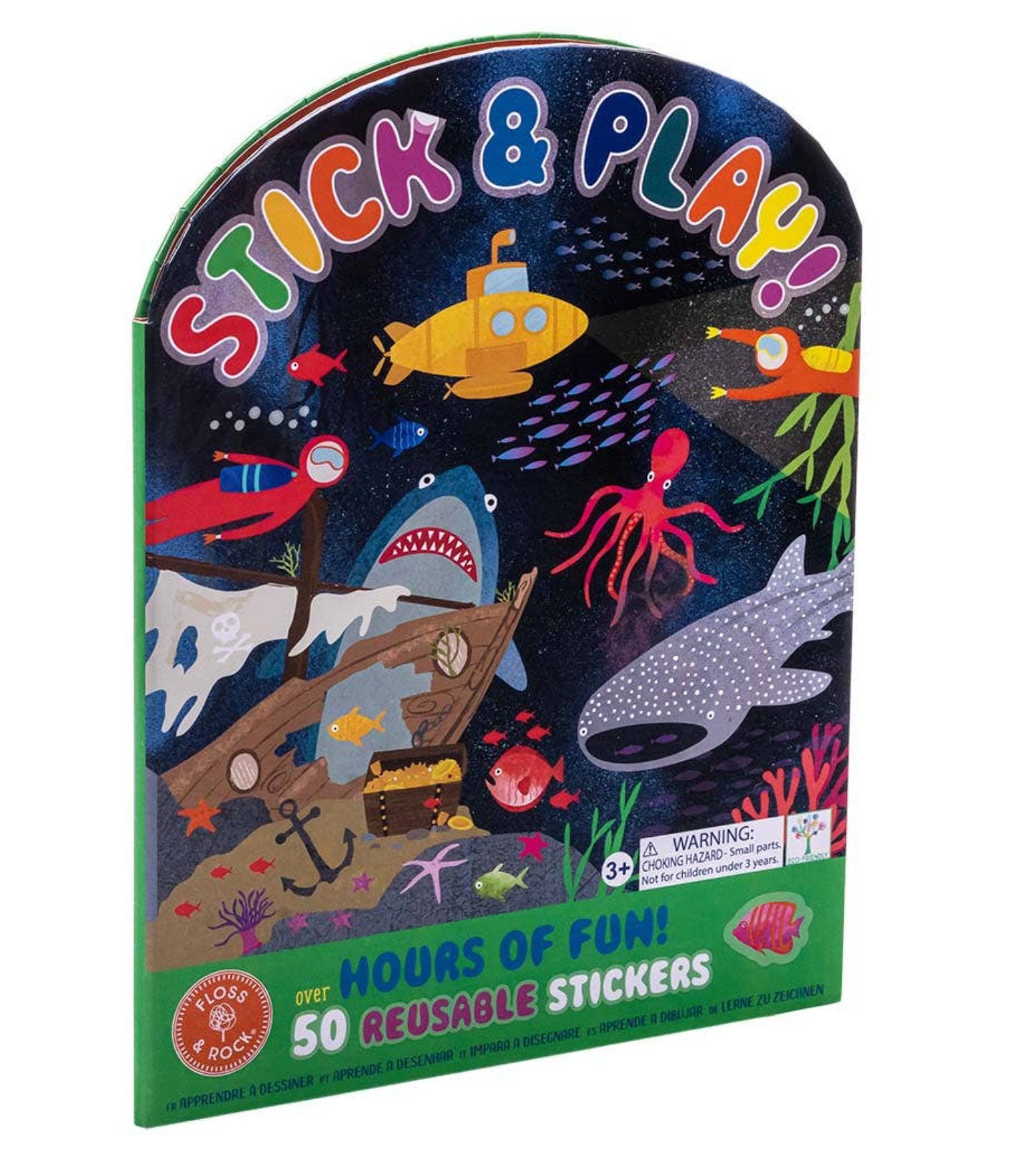 Our Deep Sea Stick & Play book is so much fun, and educational at the same time. With over 50 fun shaped reusable stickers including Octopus, Sharks, Fish, Deep Sea Divers, a Submarine and so much more. There are 2 fold out scenes to create and make up stories using the repositionable stickers. At the back there is a separate section where you match the stickers to their shapes. This will entertain little ones for hours! The hard back book folds completely flat making it perfect for travel and taking out and about. Perfect for travel and taking out and about. Over 50 reusable stickers. 2 fun fold out scenes. Educational to match your stickers to the shapes at the back. Eco-friendly. Recommended age 3+.