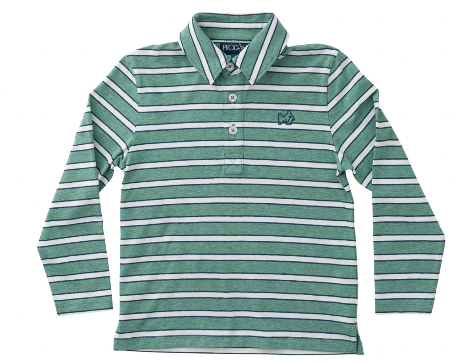 Long Sleeve Polo In Dark Denim and Green Spruce Stripe