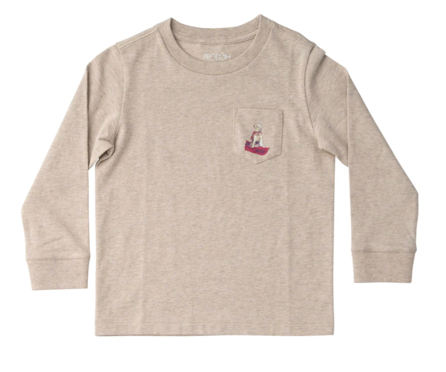 Long Sleeve T-Shirt In Heathered Khaki With Golden Retreiver