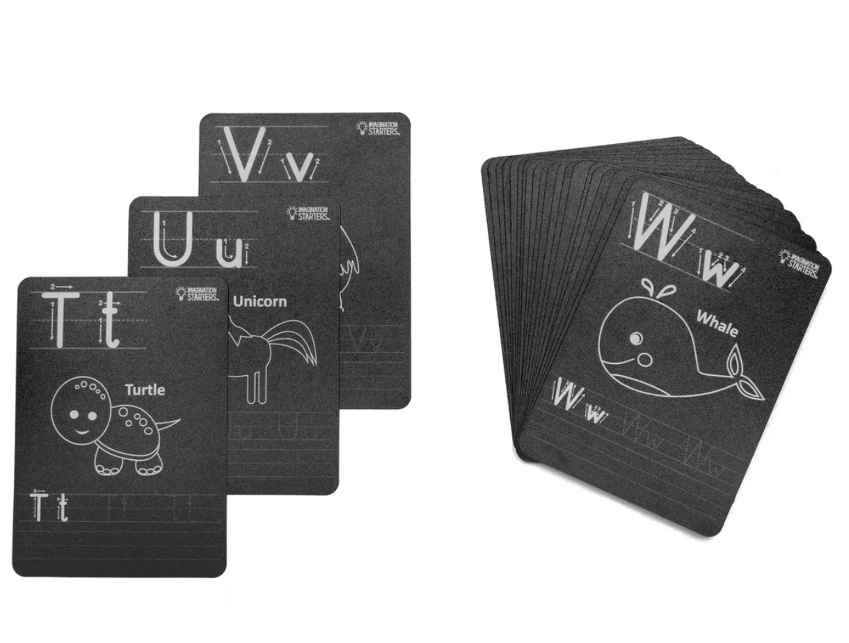 It's time to take our best-selling coloring flash cards on the road! Each kit includes a set of our chalkboard coloring cards 5"x7" in a soft carrier with 8 pack crayons and cleaning wipes for on the go fun! You can choose either Alphabet or Numbers 1-20 for the set.