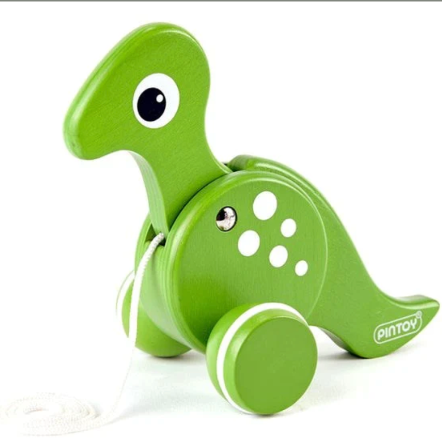 This adorable pull along T-Rex encourages children to play and walk in a fun way! Pull the string and this cute little dinosaur will tag along, wriggling its head as your child heads off on their walking adventures!