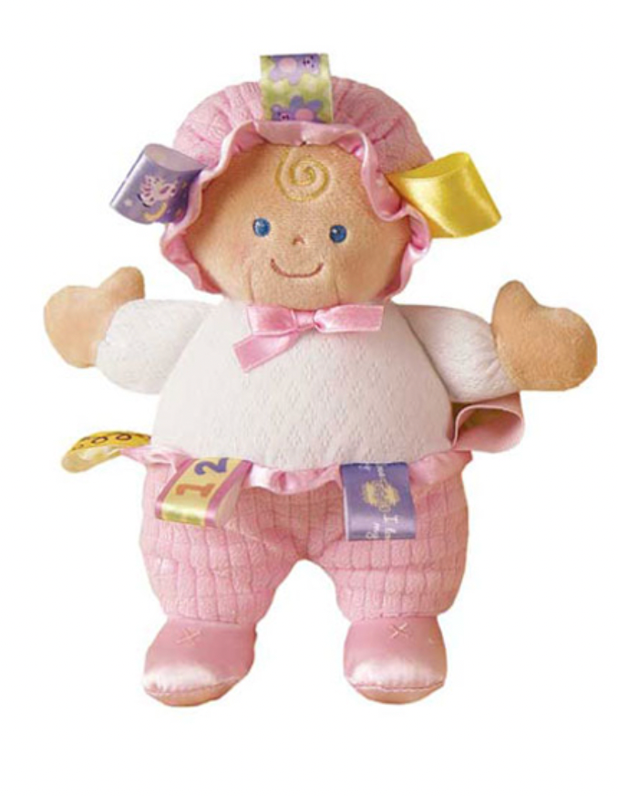 Little, soft 8″ Baby Doll wears her tags well. Her embroidered face details and multiple textures make for increased playtime fun! Machine wash, air dry.