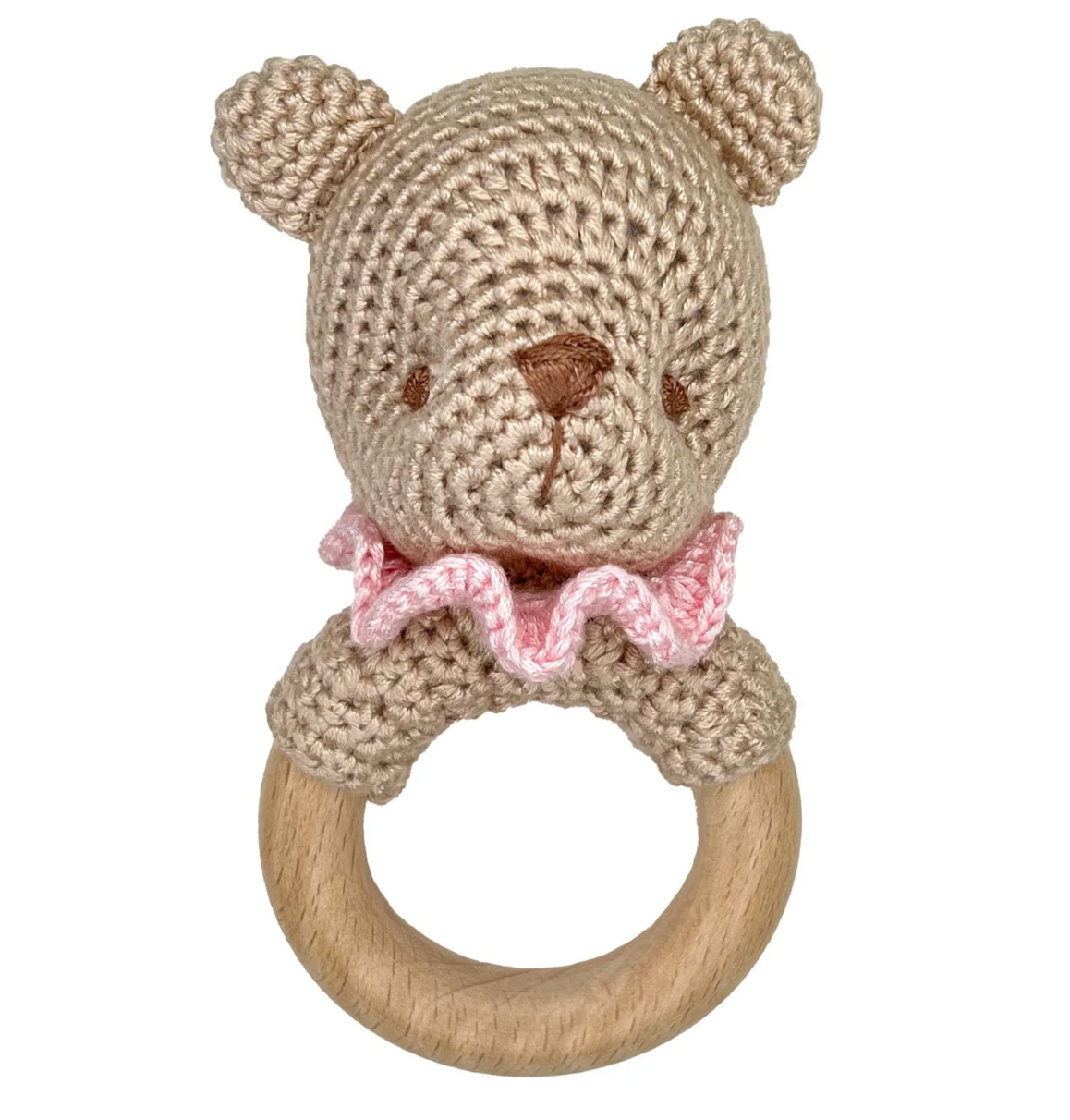 Bunny Bamboo Crochet Woodring Rattle in Pink